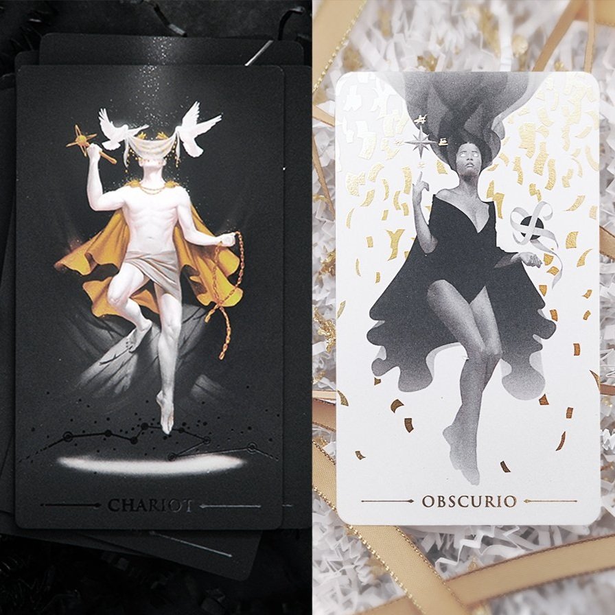 TrueBlack and Ephemere decks are the MOST luxurious and highest-quality tarot deck on the market, featuring inks from Japan, coatings from Spain, foil from Germany, cut with tungsten blades from Switzerland, and printed on artisanal paper here in the United States. These are truly the gold standard for tarot decks, and are unparalleled in quality and craftsmanship.